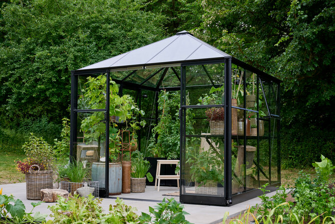 HALLS QUBE SQUARE udmærker sig med sin kvadratiske form, som giver en særlig god rumudnyttelse og en harmonisk indretning. Det åbne og luftige udtryk gør modellen ideel til dig, der ønsker et drivhus med plads til både planter, opbevaring og arbejdsområde. Her får du en løsning, der kombinerer design, funktion og fleksibilitet på elegant vis.