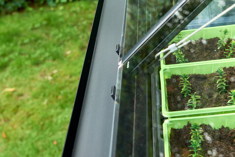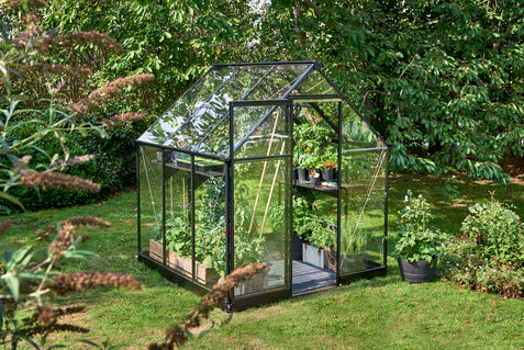 HALLS QUBE 6 er det oplagte valg til den mindre have eller til dig, der gerne vil i gang med drivhuslivet uden at kræve for meget plads. Modellen giver gode lysforhold og plads til forkultivering, krydderurter og mindre afgrøder. Det er et stærkt bud på et første drivhus, hvis du ønsker et moderne design kombineret med høj funktionalitet.