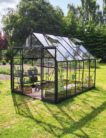 The Halls Qube greenhouse range is the most advanced design available. It features our unique flush glazing system, giving a unique look in the garden. The greenhouse also feature low threshold doors and wide gutters. The Qube greenhouse is designed and manufacured in Odense, Denmark and covered by our 12 year guarantee.